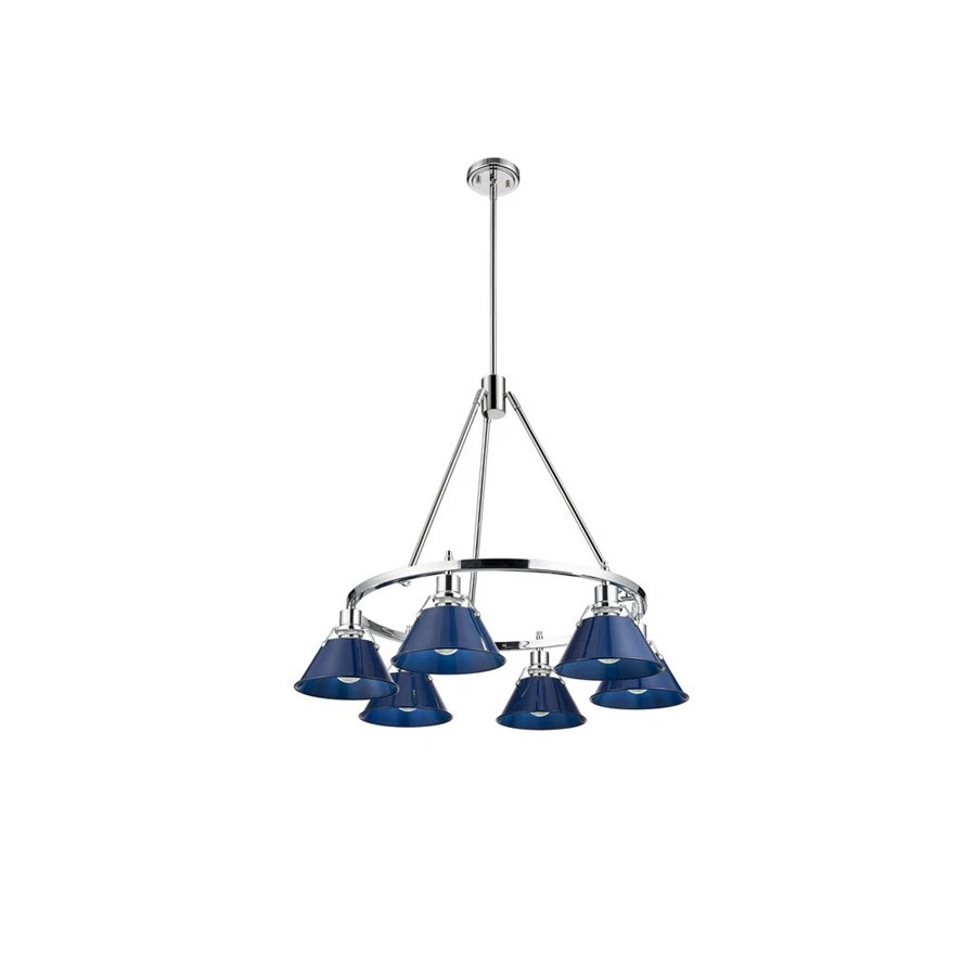 Golden Lighting Orwell 6-Light Chandelier, Chrome/Matte Navy - 3306-6CH-NVY