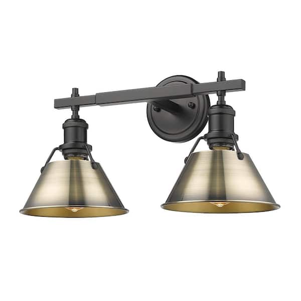 Orwell 18.25 in. 2-Light Matte Black and Aged Brass Vanity Light