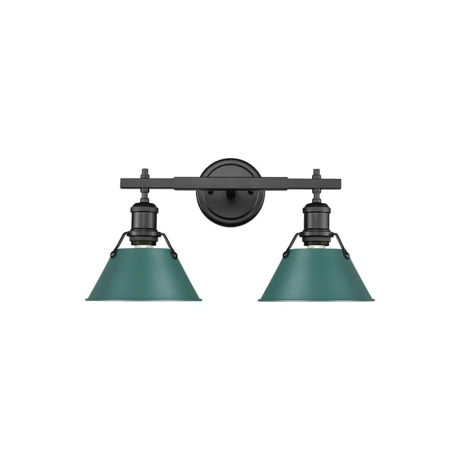 Golden Orwell 2-Light Vanity Light, Matte Black/Pine Green - 3306-BA2BLK-GN