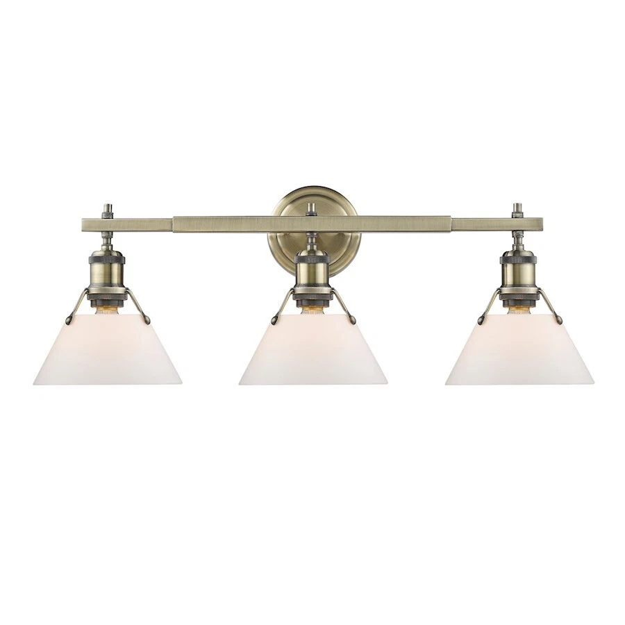 Golden Orwell 3 Light Bath Vanity, Aged Brass, Opal Glass Shades - 3306-BA3AB-OP