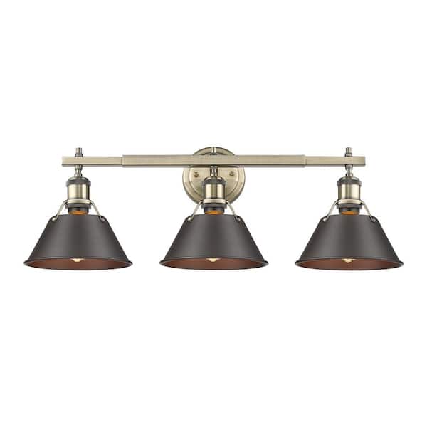 Orwell AB 3-Light Aged Brass Bath Light with Rubbed Bronze Shade
