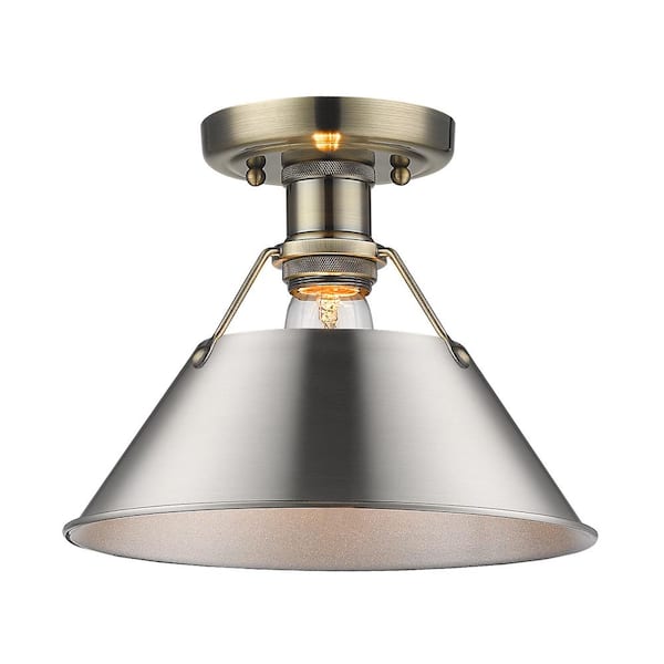 Orwell 10 in. 1-Light Aged Brass with Pewter Shade Flush Mount