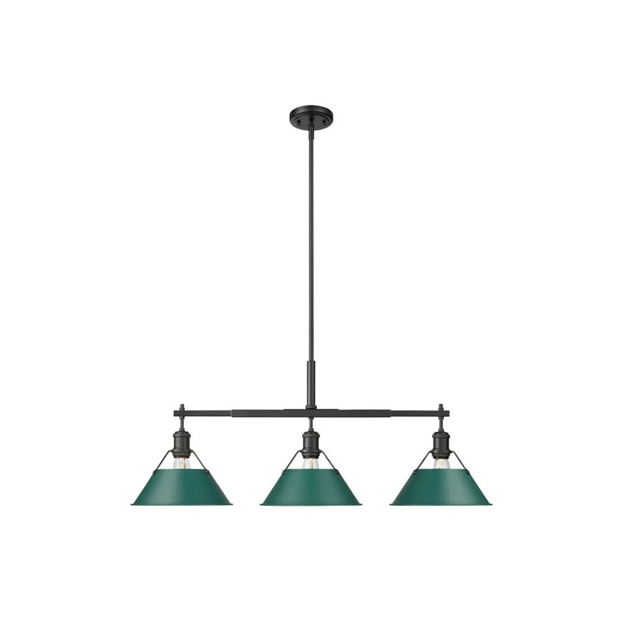 Golden Orwell 3-Light Linear Pendant, Matte Black/Pine Green - 3306-LPBLK-GN