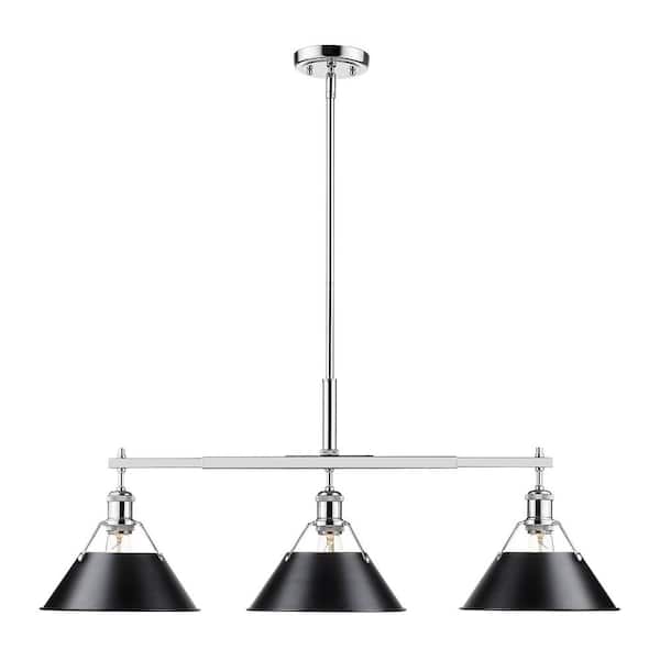 Orwell 3-Light Chrome with Black Shade Linear Pendant