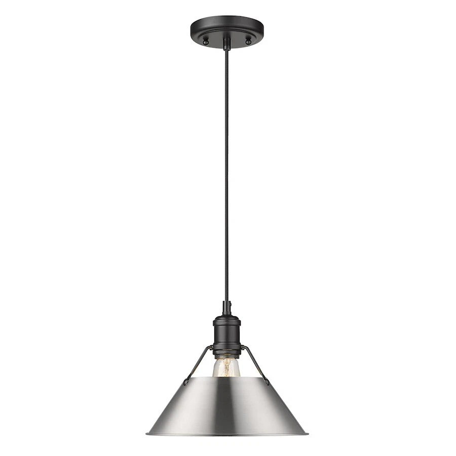 Golden Lighting Orwell 1 Light 10" Pendant, Matte Black/Pewter - 3306-MBLK-PW