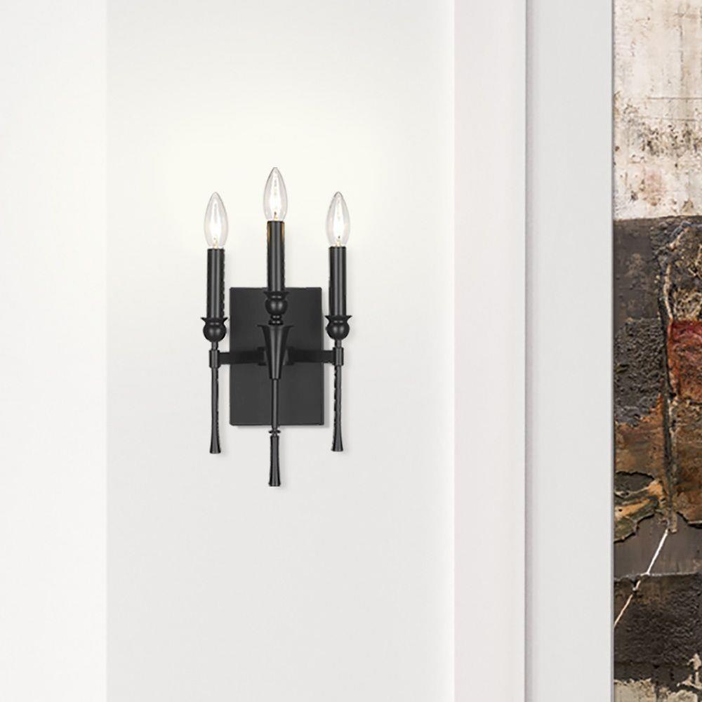 Landon’s refined silhouette makes it suitable for traditional to transitional spaces. This oversized, yet unobtrusive wall sconce makes a great statement piece with alternating details that draw the eye. Three exposed candelabras create widespread illumination. The sconces are available in trending finishes that work well with many interiors.