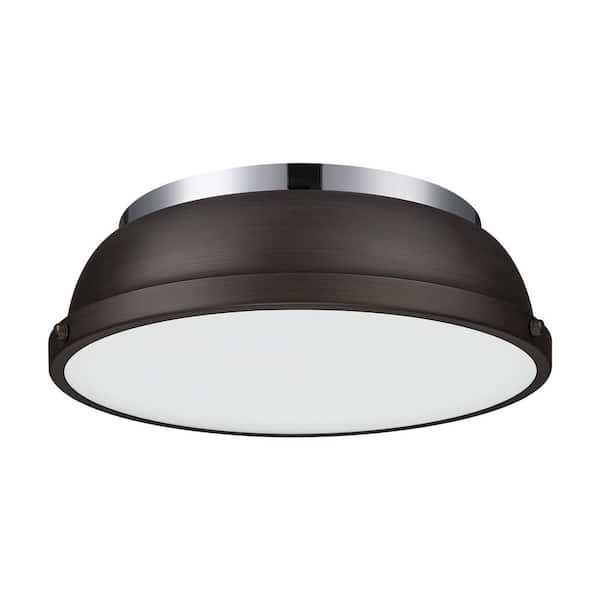 Duncan 14 in. 2-Light Chrome Flush Mount with Bronze Shade and No Bulbs Included 1-Pack
