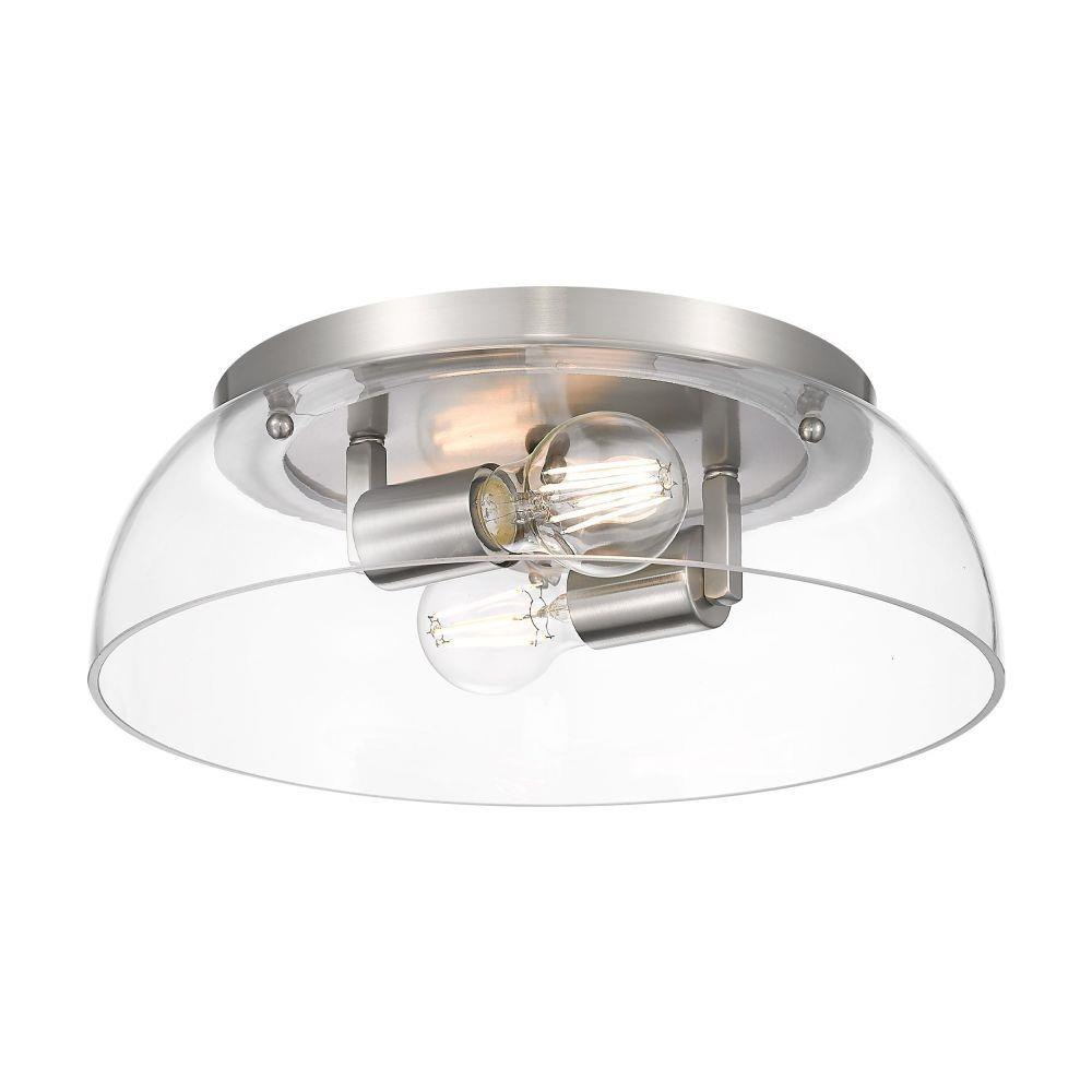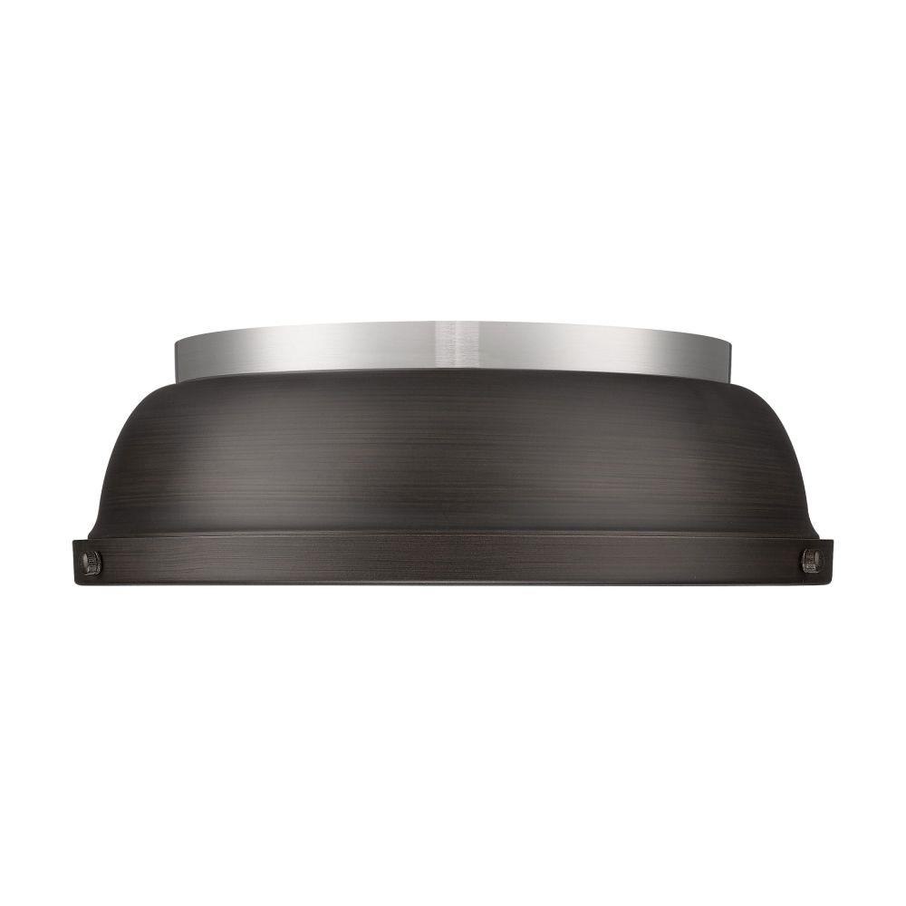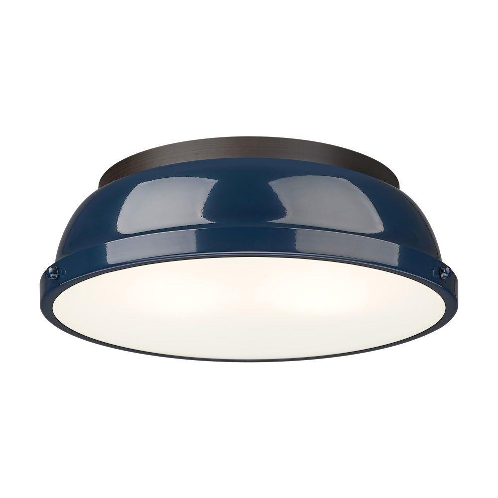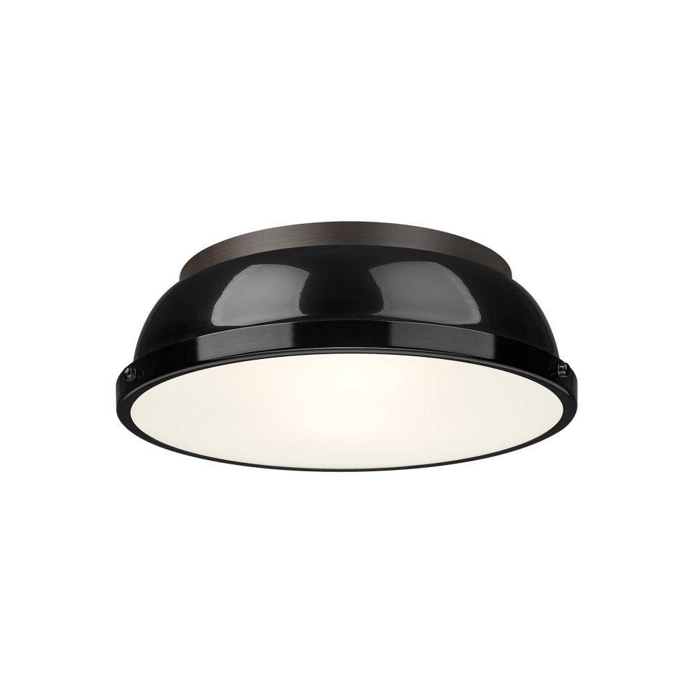 Transform the look of your room with this classic, vintage-inspired fixture by Golden Lighting. Golden Lighting's Duncan collection is contemporary style with an industrial feel. The collection features a variety of simple, traditional silhouettes that are a nod to a bygone era. A variety of plated and painted metal shade finishes are bra offered in combination with durable Aged Brass, Black, Chrome or Pewter fixture bodies. The Rubbed Bronze fixtures are paired with Rubbed Bronze shades. This flush mount is perfect for modern or contemporary style home decors. It works perfectly in a kitchen, hallway or bath and is UL approved for damp locations. This aged brass flush mount is paired with a chrome shade. The shade is a glossy, reflective metallic.