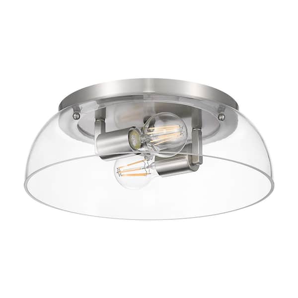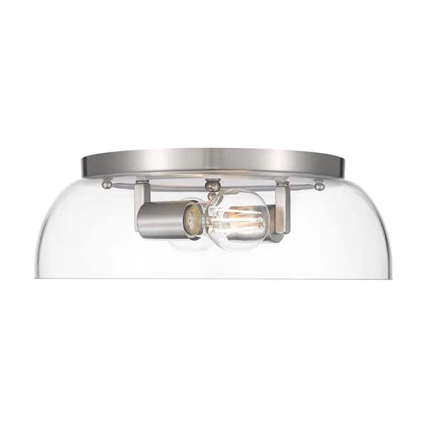 Duncan 14 in. 2-Light Pewter Transitional Flush Mount with Clear Glass Shade, No Bulbs Included