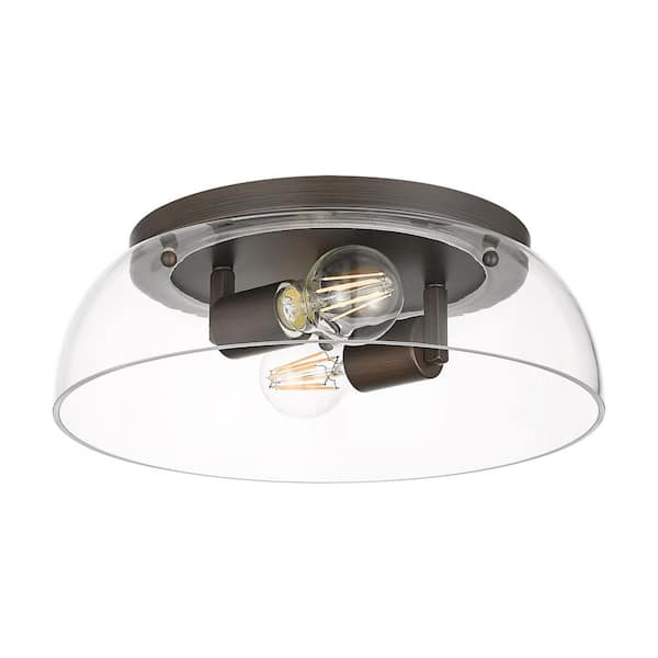 Duncan 14 in. Rubbed Bronze Transitional Flush Mount with Clear Glass Shade, No Bulbs Included