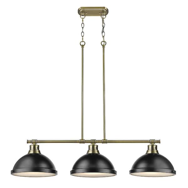 Duncan 3-Light Aged Brass Pendant with Matte Black Shade