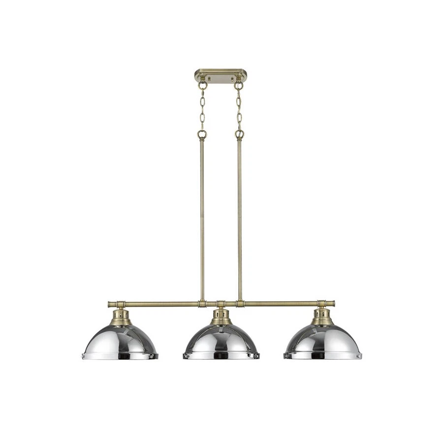 Golden Lighting Duncan 3-Light Linear Pendant, Aged Brass/Chrome - 3602-3LPAB-CH