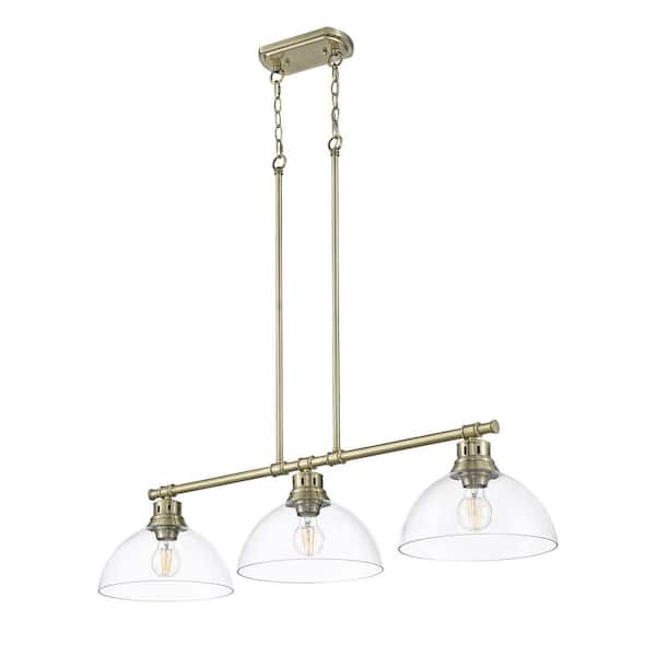 Duncan 300-Watt 3 Light Aged Brass Island Pendant Light with Clear Glass Shade, No Bulbs Included