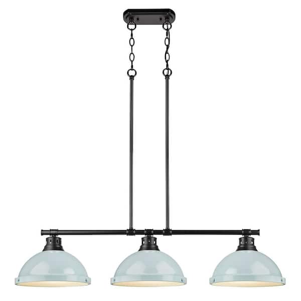Duncan 3-Light Black Pendant with Seafoam Shade