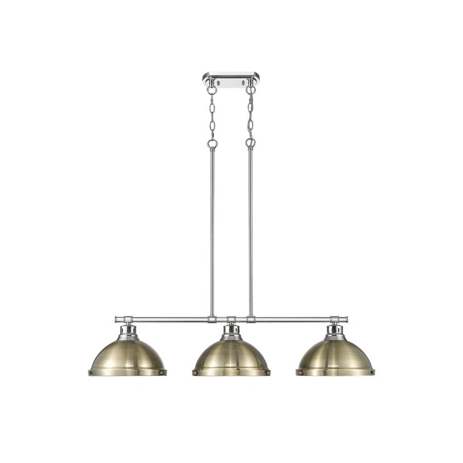 Golden Lighting Duncan 3-Light Linear Pendant, Chrome/Aged Brass - 3602-3LPCH-AB