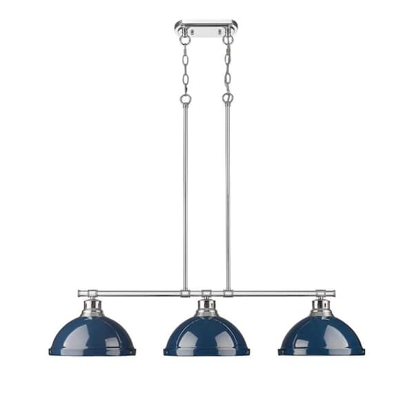 Duncan 300-Watt 3-Light Chrome Island Pendant Light with Blue Shade and No Bulbs Included