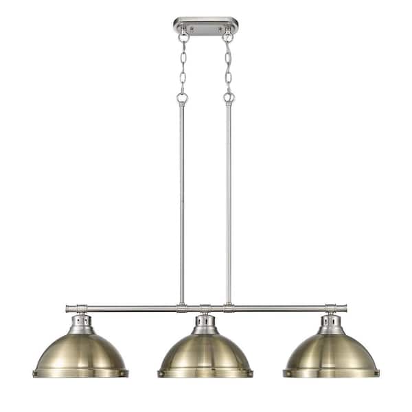 Duncan 300-Watt 3-Light Pewter Island Pendant Light with Gold Shade and No Bulbs Included