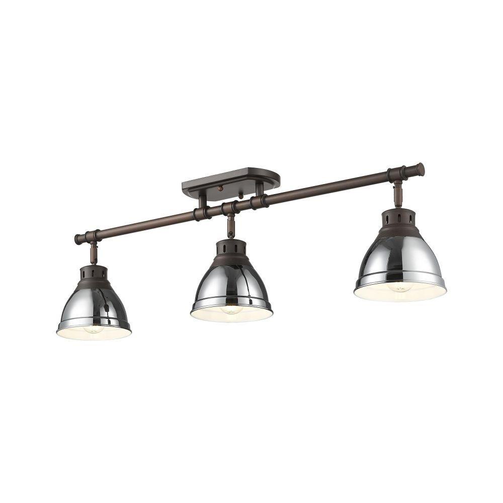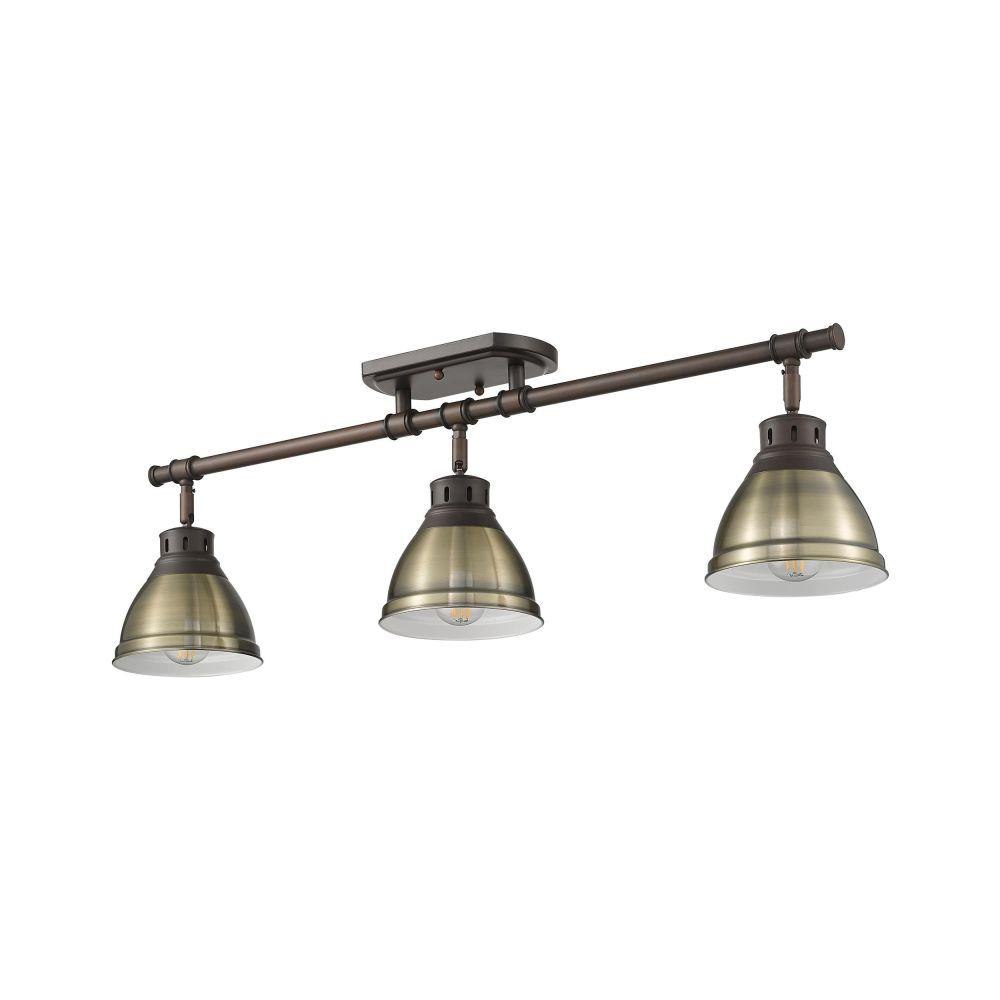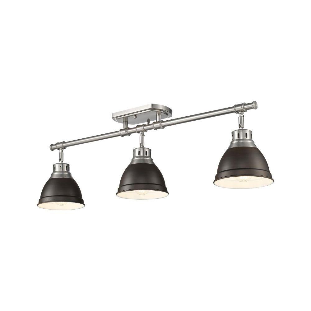 Transform the look of your room with this classic, vintage-inspired fixture, the Duncan collection is contemporary style with an industrial feel. The collection features a variety of simple, traditional silhouettes that are a nod to a bygone era. A variety of plated and painted metal shade finishes are offered in combination with durable Aged Brass, Black, Chrome or Pewter fixture bodies. The Rubbed Bronze fixtures are paired with Rubbed Bronze shades. This 3-light semi-flush is highly versatile and maneuverable. The swivel on the canopy moves 90 degrees allowing the fixture to be mounted on the wall or ceiling. The fixture's shades can also be positioned freely.