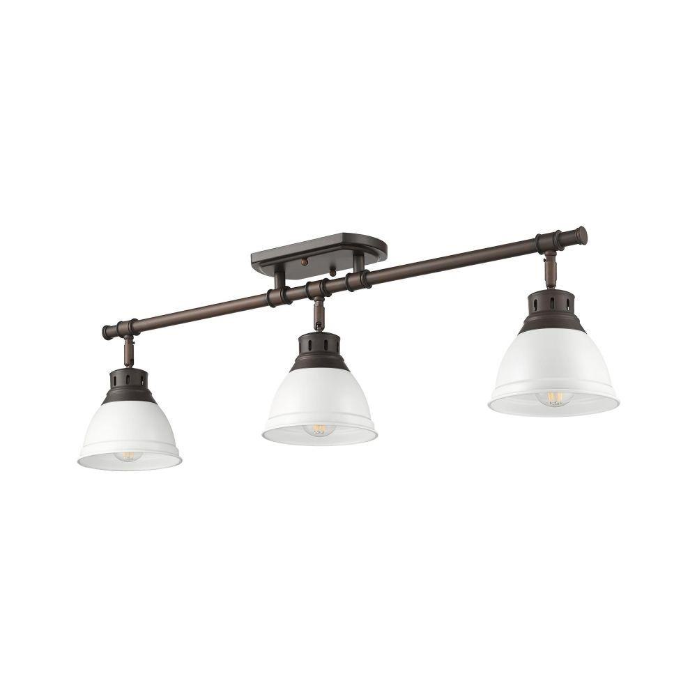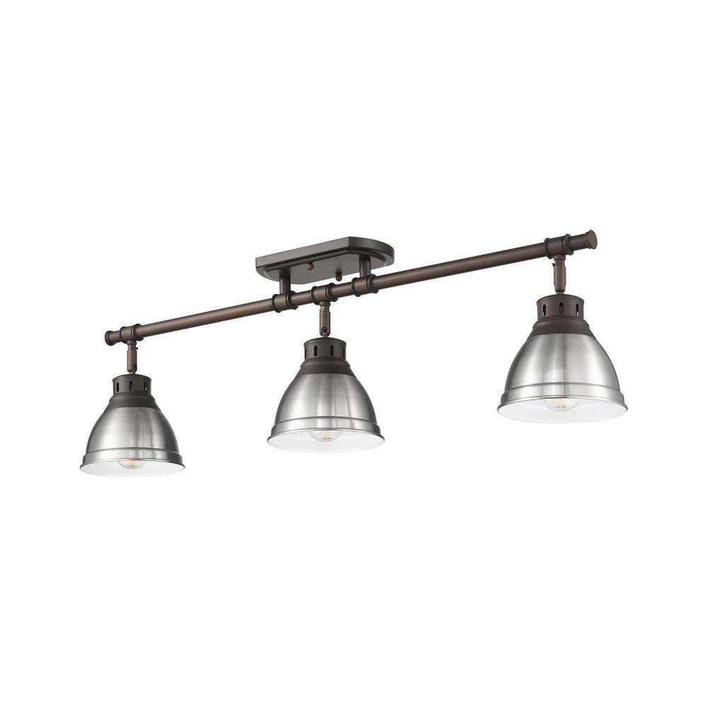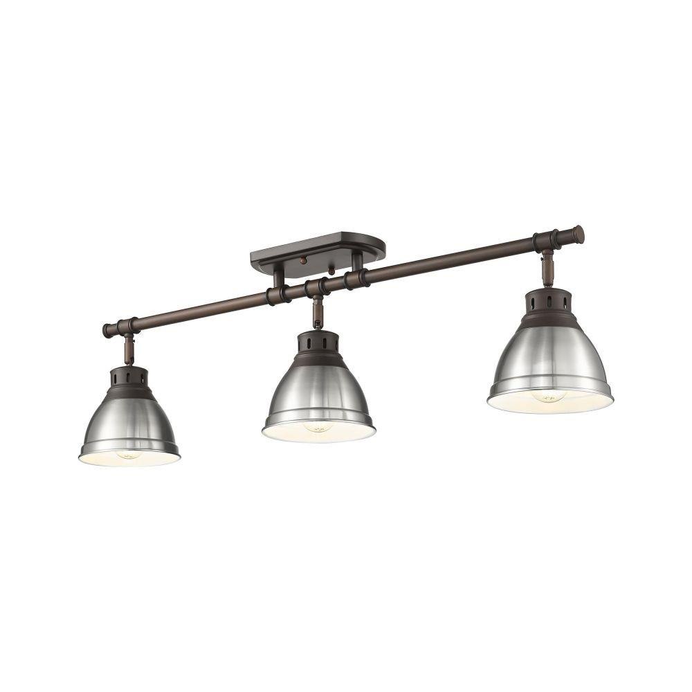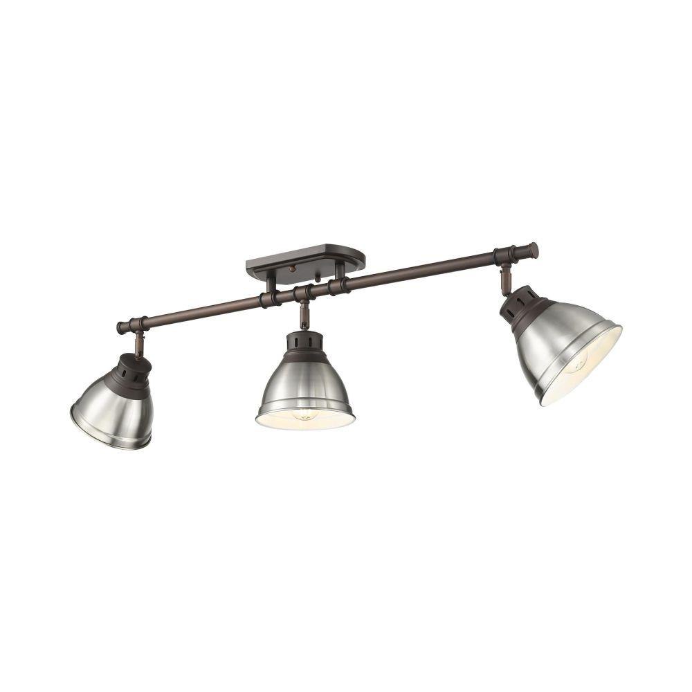 Transform the look of your room with this classic, vintage-inspired fixture, the Duncan collection is contemporary style with an industrial feel. The collection features a variety of simple, traditional silhouettes that are a nod to a bygone era. A variety of plated and painted metal shade finishes are offered in combination with durable Aged Brass, Black, Chrome or Pewter fixture bodies. The Rubbed Bronze fixtures are paired with Rubbed Bronze shades. This 3-light semi-flush is highly versatile and maneuverable. The swivel on the canopy moves 90 degrees allowing the fixture to be mounted on the wall or ceiling. The fixture's shades can also be positioned freely.