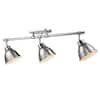 Bring timeless elegance into your home with the Yep by Golden Lighting Duncan 3-light Semi-Flush Mount. Featuring a pewter metal shade and a Chrome frame, it creates a welcoming atmosphere. The pewter shade offers a soft, warm silver-grey tone with a satin lustre that gently diffuses light, creating an elegant, non-glare glow that enhances your living space beautifully. This stylish fixture is perfect for entryways, bedrooms, kitchens, and living areas with mid-height ceilings. It is damp location rated, suitable for covered and semi-enclosed spaces with occasional moisture. Customize lighting by adjusting the directional heads to highlight your favorite decor features. Overall Dimensions: 35.38"W x 10.75"H x 6.5"D. Requires 3 E26 Medium base bulbs (not included), max 100W per bulb. Merge classic charm and modern practicality with this exquisite lighting fixture in your home.