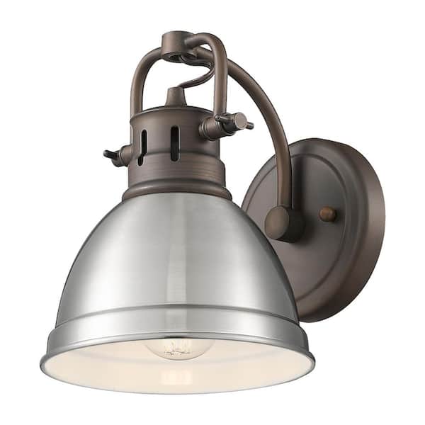 Duncan 8.25 in. 1-Light Rubbed Bronze Vanity Light with Silver Shade