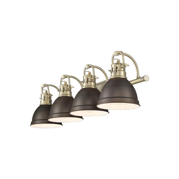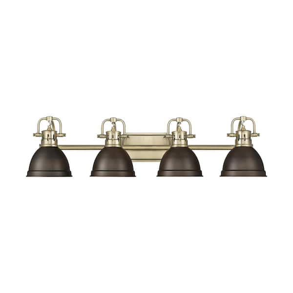 Duncan 8.25 in. 4-Light Aged Brass Vanity Light with Bronze Shade