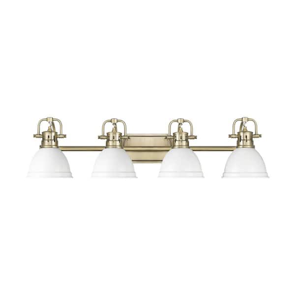 Duncan 8.25 in. 4-Light Aged Brass Vanity Light with White Shade