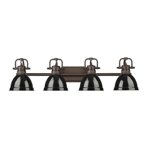 Duncan 8.25 in. 4-Light Rubbed Bronze Vanity Light with Black Shade