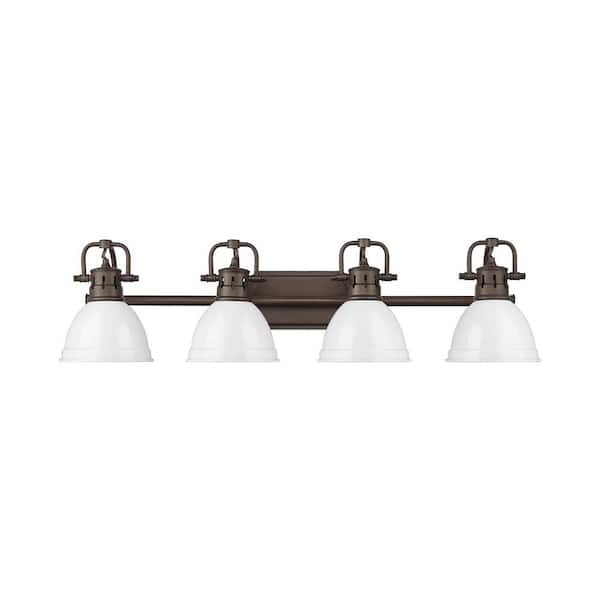 Duncan 8.25 in. 4-Light Rubbed Bronze Vanity Light with White Shade