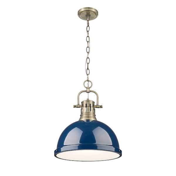 Duncan 100-Watt 1-Light Aged Brass Shaded Pendant Light with Blue Shade and No Bulbs Included