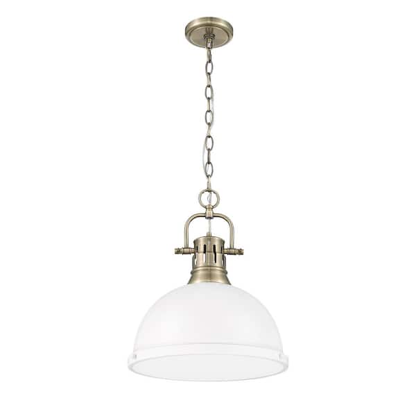 Duncan 100-Watt 1-Light Aged Brass Pendant Light with Steel Shade