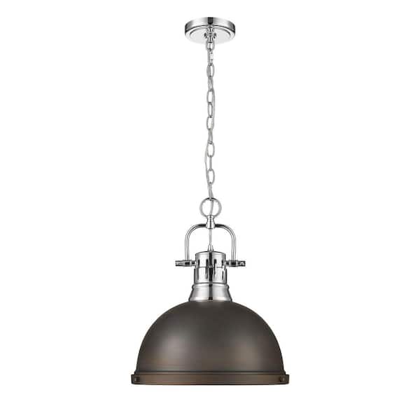 Duncan 16.875 in. 1 Light Chrome Pendant Light with Rubbed Bronze Shade