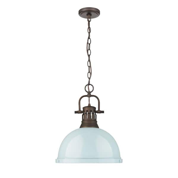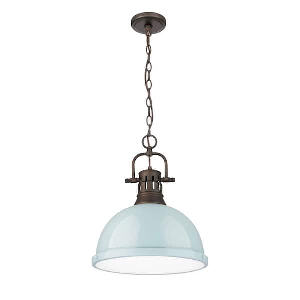 Duncan 16.875 in. 1 Light Rubbed Bronze Pendant Light with Seafoam Shade