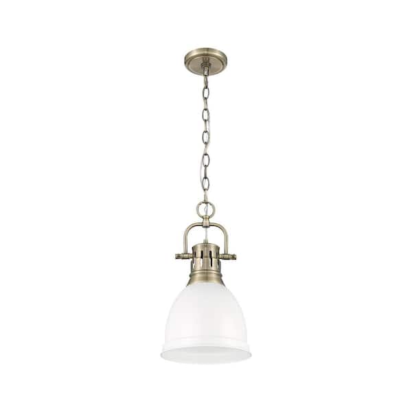 Duncan 100-Watt 1-Light Aged Brass Pendant Light with White Shade and No Bulbs Included