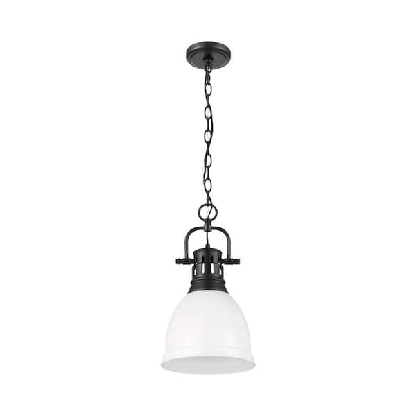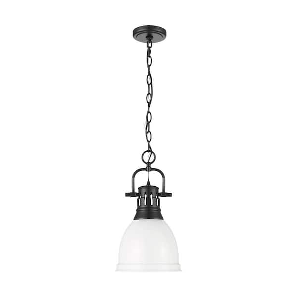 Duncan 100-Watt 1-Light Matte Black Pendant Light with White Shade and No Bulbs Included