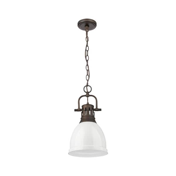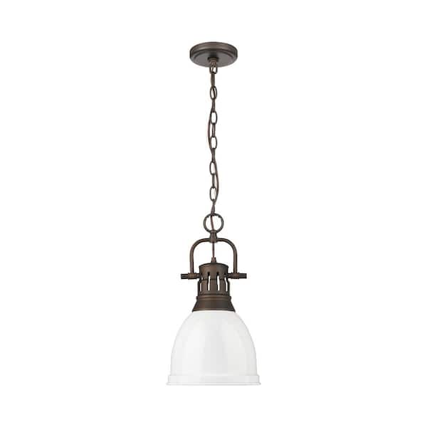 Duncan 100-Watt 1-Light Rubbed Bronze Pendant Light with White Shade and No Bulbs Included