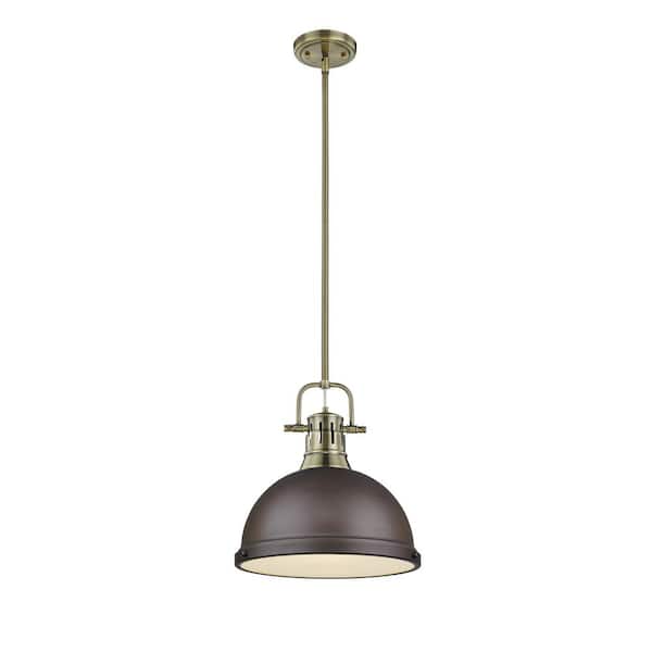 Duncan AB 1-Light Aged Brass Pendant with Rubbed Bronze Shade