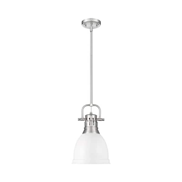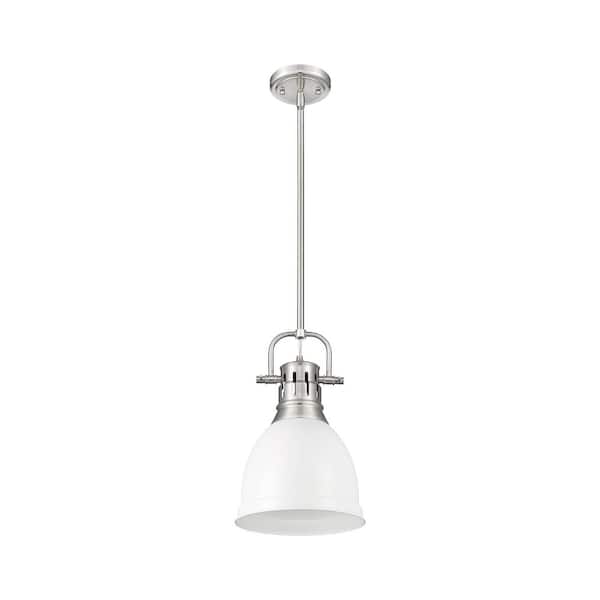 Duncan 14.25 in. 1 Light Pewter Pendant Light with Matte White Shade