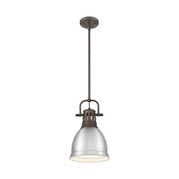Duncan 14.25 in. 1 Light Rubbed Bronze Pendant Light with Pewter Shade