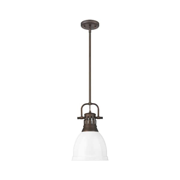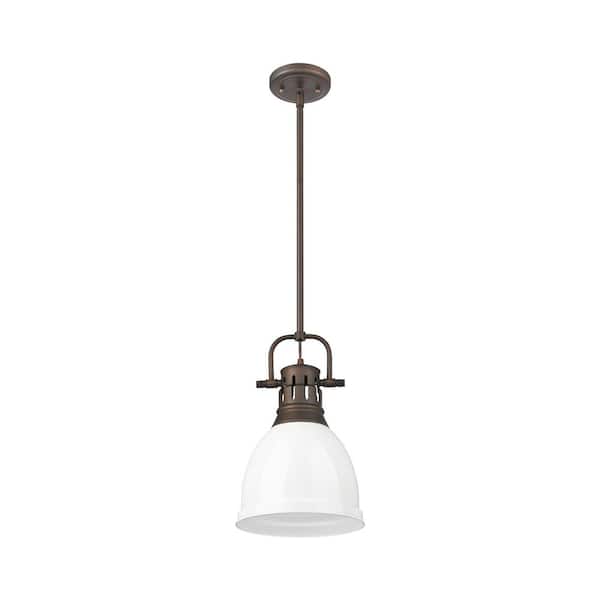 Duncan 14.25 in. 1 Light Rubbed Bronze Pendant Light with White Shade