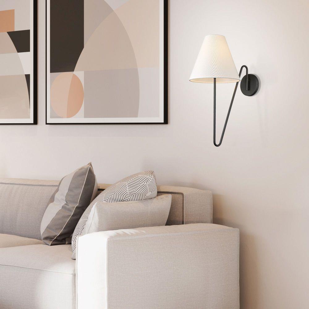 Simple and modern, Kennedy is a sleek swing arm sconce. The artistic bend in the sharply curved arm gives the fixture a look that works well with transitional to modern décor. The tapered Ivory Linen shade has a distinctive conical shape that is stylish and functional. Open at the top and bottom, the oversized shade creates excellent task lighting, while the opaqueness of the fabric shade allows warm light to drift into a room. Hang this damp-rated light anywhere in your home. The fixture conveniently articulates left and right. Reposition as often as needed to suit your use. Quickly turn the light on and off using the power switch on the socket. Choose between two installation options: Plug-in or Hardwire.