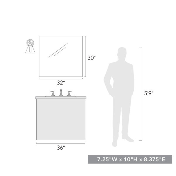 Graceful and modern, this 1-light armed sconce gives you convenient illumination for your hallway or your bathroom. Crafted from metal with a sleek finish, it includes a circular backplate and a clean-lined arm that connects to the holder. Suspended by tension, gravity alone holds the clear glass shade in place to create a stylized hourglass silhouette. Nestled within is a single bulb, sold separately and compatible with dimmer switches. This wall sconce is also damp-rated, making it safe to install and use in high-moisture environments.