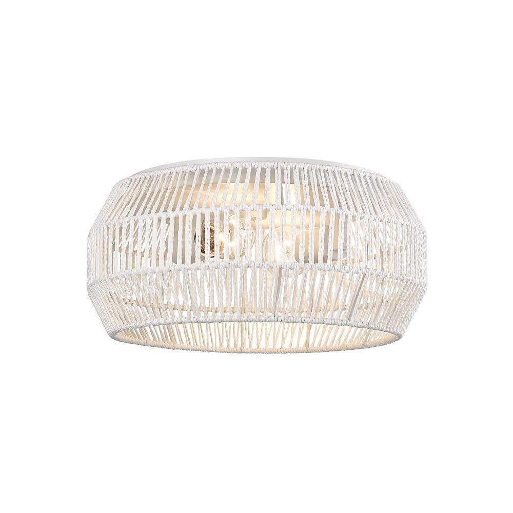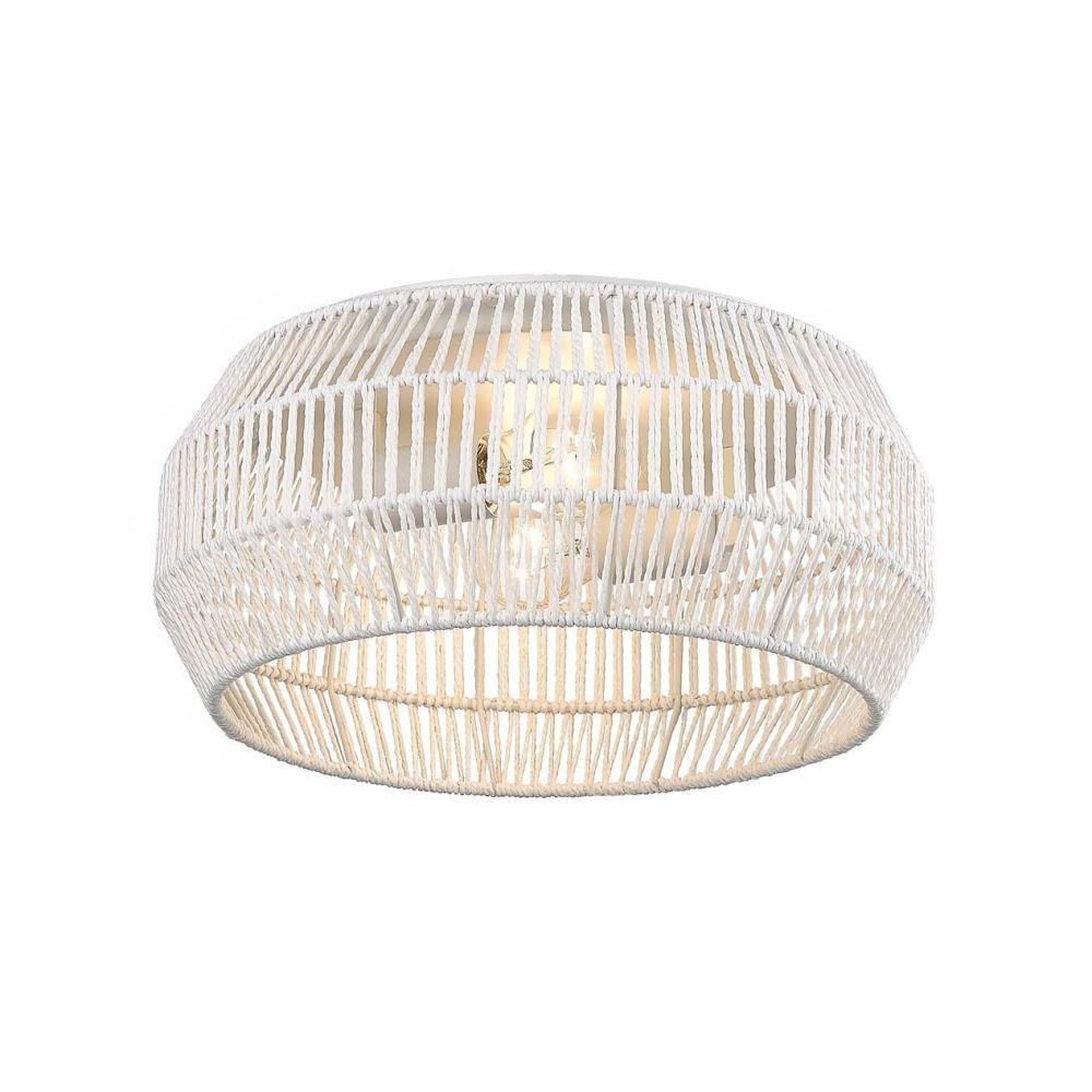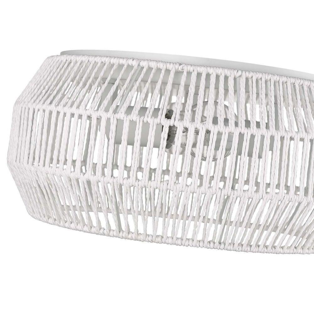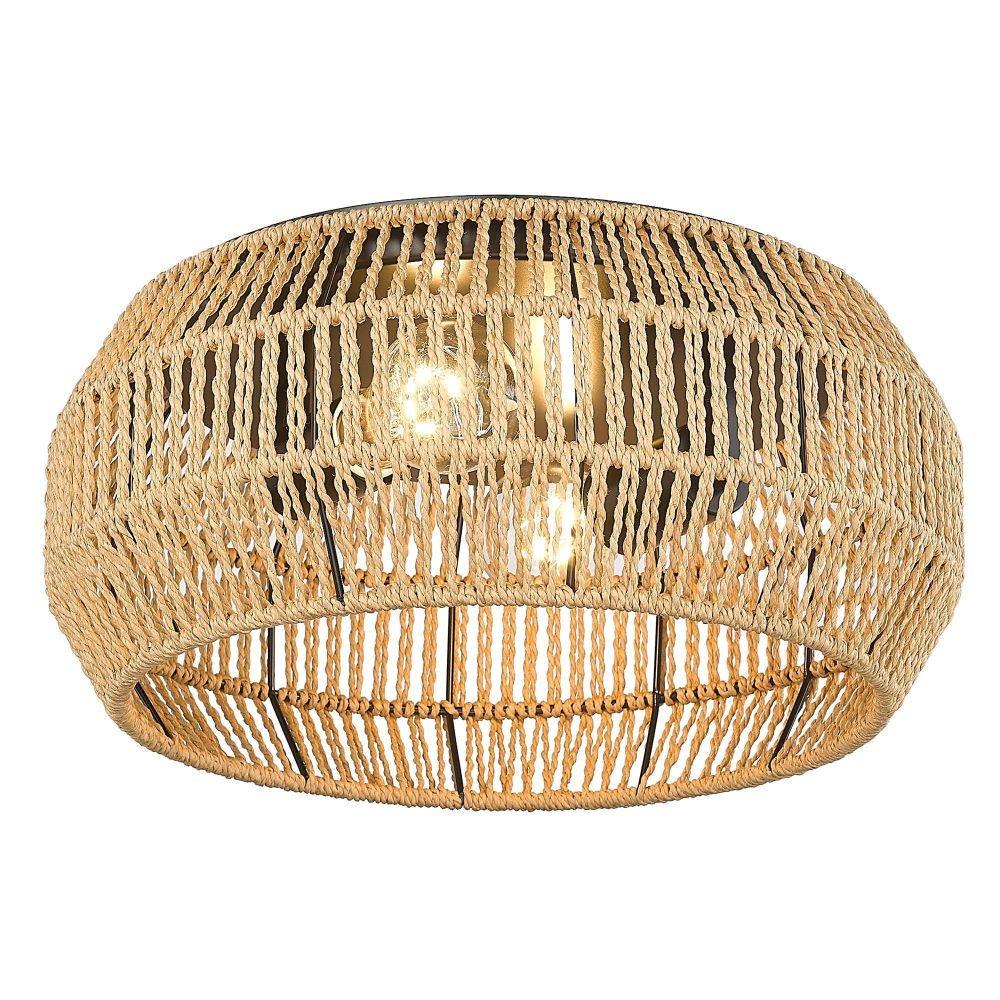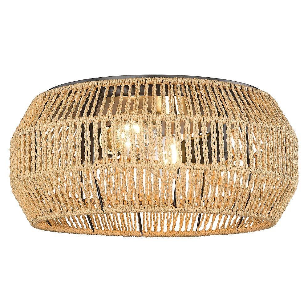 The perfect addition to your coastal-inspired dream space, Marlee is casual, rustic elegance in a compact design. The fixture sits close to the ceiling with organic materials and a geometric shape. A rope shade and Matte Black metal hardware create a stylish mixture of materials. Beneath the shade, partially exposed bulbs provide widespread illumination. The fixture casts intriguing light and shadow patterns on the ceiling and nearby surfaces. The handwoven Raphia rope has a modern, contemporary look that is highly adaptable to rattan furniture and décor trends. Hang this damp-rated fixture anywhere in your home.