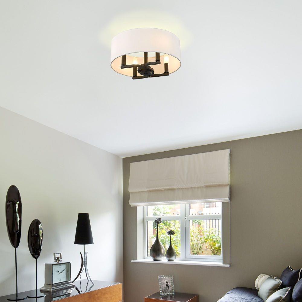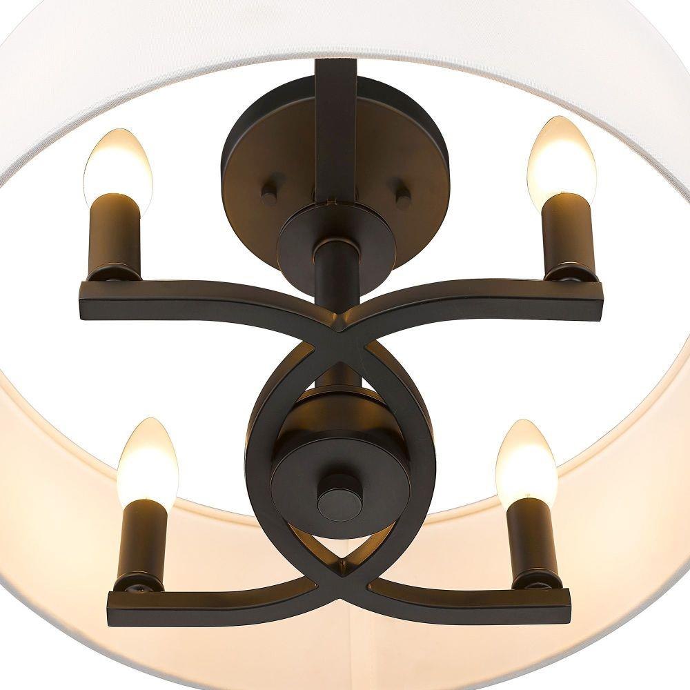 Stylishly designed, Eliana is the epitome of Traditional elegance in an updated Transitional form. This black and white design is perfect for most spaces. Contrasting the smooth Matte Black finish, a fashionable and crisp Modern White Shade gently diffuses the light. With partially exposed bulbs, this 4-light semi-flush is sure to provide ample illumination.