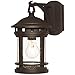 The Sedona Outdoor Wall Lantern delivers timeless mission-style design with a rich oil rubbed bronze finish and seedy glass shade, ideal for enhancing a variety of architectural styles. Built from cast aluminum and treated to protect against pitting and discoloration, it is sealed for waterproof protection to withstand harsh weather. Perfect for lighting front porches, patios, garages, or garden walls, this fixture measures 7 inches wide by 13 inches high, extends 9.75 inches from the wall, and fits one medium-base 60W bulb (bulb not included). It installs easily with included mounting hardware, is cULus certified for wet locations, and comes with a 1-year warranty.