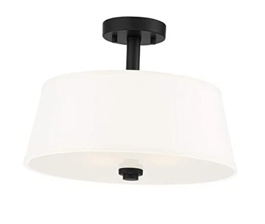 2-Light Semi Flush Mount Ceiling Light, 15 Inch Studio Lighting Matte Black