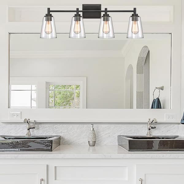 Westin 31 in. 4-Light Matte Black Industrial Vanity Light with Clear Glass Shades