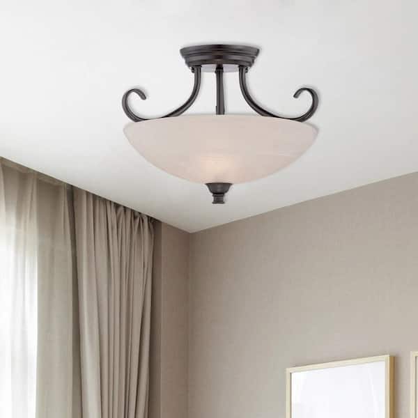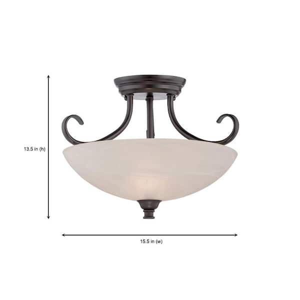 Kendall 15.5 in. 2-Light Oil Rubbed Bronze Transitional Entryway Semi-Flush Mount with Alabaster Glass Shade