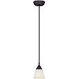 - ENHANCE YOUR HOME LIGHTING: Featuring an oil rubbed bronze finish and frosted glass shade soft diffuse lighting, our pendant ceiling light provides a stylish way to enhance the ambience of any interior decor. Maximum hanging height of 82.75 inches, includes (1) 6-inch rod, (1) 12-inch rod, and (1) 18-inch rod, and is compatible with ceilings at a slope of 45 degrees or less