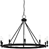 • ELEVATE YOUR AMBIENCE: This visually striking chandelier features a distinctive farmhouse rustic visual aesthetic and minimalist exposed bulb design to add vibrant lighting and elegance to large areas of your home; maximum hanging height of 57.25 inches with included 3 ft chain and 12 ft wire, and is adjustable for sloped ceilings up to 45 degrees